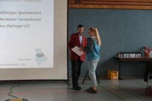 Im Rahmen der Jahreshauptversammlung der Region Mitte des Leichtathletikverbandes Nordrhein wurden in Remscheid diesmal auch drei Vereine geehrt. Hierbei handelt es sich um eine Überraschungsehrung, die den Vereinen vorher nicht angekündigt wird. Auch hier hielt Vorstandsmitglied Tim Husel die Lautatio. Er wies zunächst darauf, daß es sich um ein nachträgliche bzw. verspätete Ehrung handelt. Die Ehrung erhält der Kettwiger Sportverein 70/86 e.V. aus verschiedenen Gründen. Zunächst wird anerkannt, daß sich die Kettwiger den geänderten Gegebenheiten angepaßt hat, und sich aus den zwei Vereinen, Kettwiger Turnverein und Kettwig vor der Brücke, rechts und links der Ruhr zusammengetan haben und hiermit insbesondere der Leichtathletik zukunftsorientierte Rahmenbedingungen geschaffen hatten. Zusätzlich wird auch die Fusion mit dem LAC THG Kettwig anerkannt, die dem KSV Schlagzeilen in der Region Mitte als auch beim Verband Nordrhein brachte. Hier wurde die erfolgreiche Arbeit des LACs fortgeführt, wo der KSV zahlreiche jugendliche zu Regions- und Nordrheinmeisterschaften schickte und auch im Männer und Seniorenbereich bis zu deutschen Meisterschaften vertreten ist. Als letztes Grund nannte er noch den schönen Kettwiger Sportplatz, der durch das Fronleichnamssportfest mit zahlreichen Athletinnen und Athleten sowie zuschauenden Gästen gefüllt wurde. Damit wurde durch die Vorsitzenden Svenja Bodden ein Glaspokal an den KSV Vertreter Philippe Abraham überreicht.