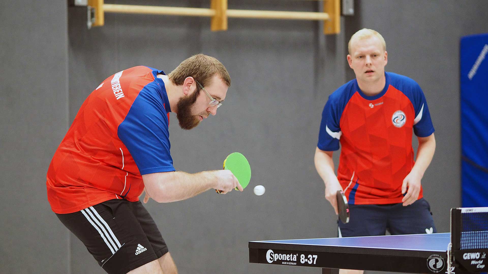 Guy Haeyn und Julian Knorr (hier im Doppel) konnten beide für die 2.Herren gegen TTS Duisburg punkten!